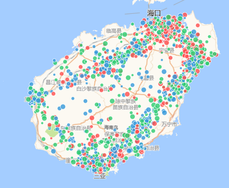 最终方案:建立预处理流水线,优先从微博正文提取细粒度地址,并存入 city 和 poi 字段,再结合高德 API 获取真实经纬度。对于无精确地址的数据,采用沿海环岛高速G98和主要市县的中心点按人口权重插值的算法进行空间纠偏。